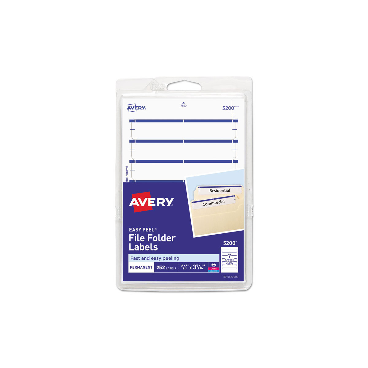 Printable 4" x 6" - Permanent File Folder Labels, 0.69 x 3.44, White, 7/Sheet, 36 Sheets/Pack, (5200)