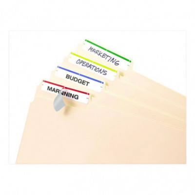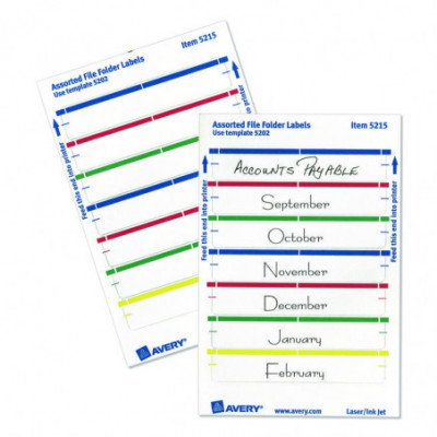 Make file folders stand out with a professional look. These file folder labels feature a strip of eye-catching color at the top to make it even easier to find just the folder you're looking for and are great for color coding. Write on the labels by hand or use the free templates available from Avery® Design & Print to format them easily on your computer and print them with your laser or inkjet printer. The permanent adhesive ensures that your label will stay put without curling away. For a truly standout design, it's hard to beat these convenient labels.