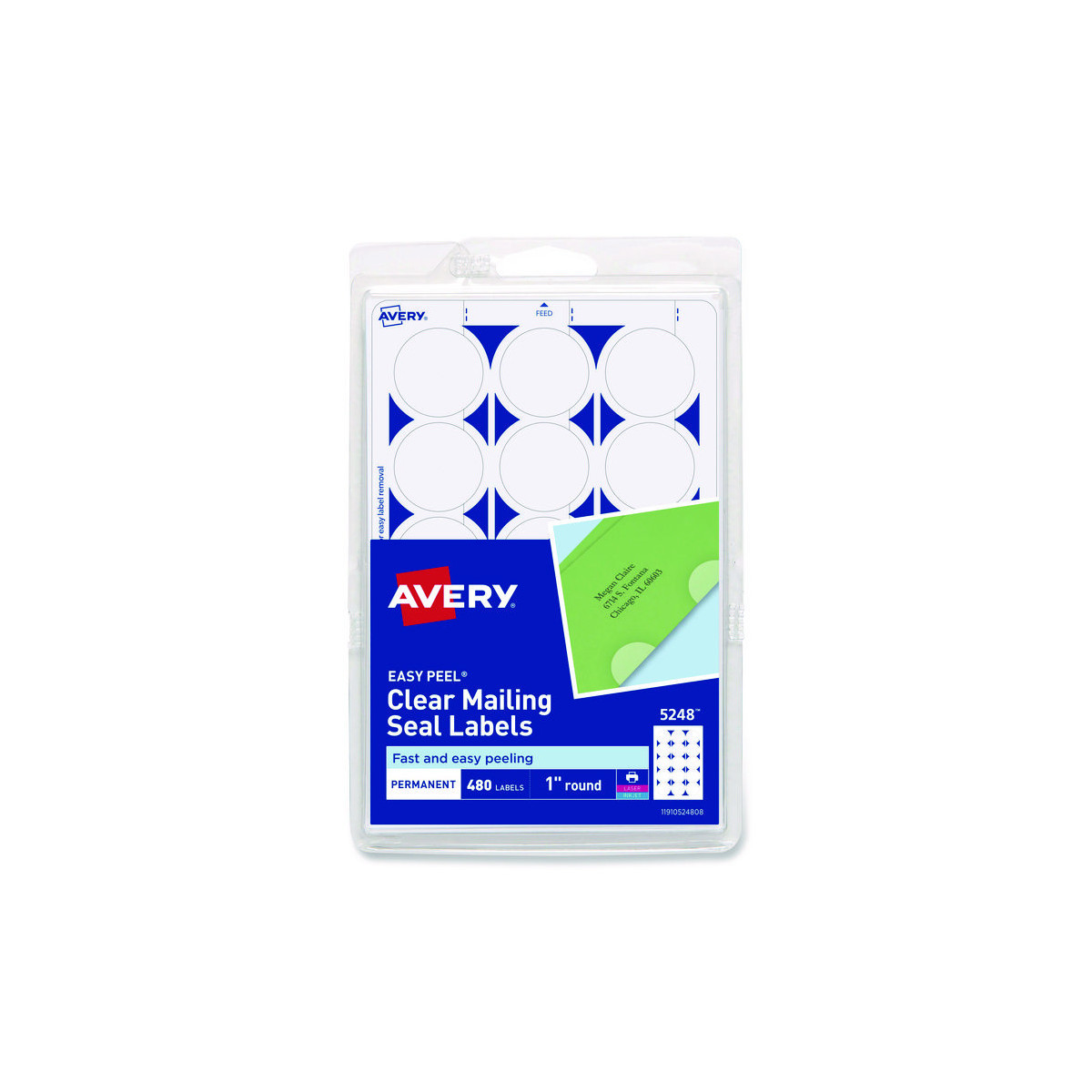Printable Mailing Seals, 1" dia, Clear, 15/Sheet, 32 Sheets/Pack, (5248)
