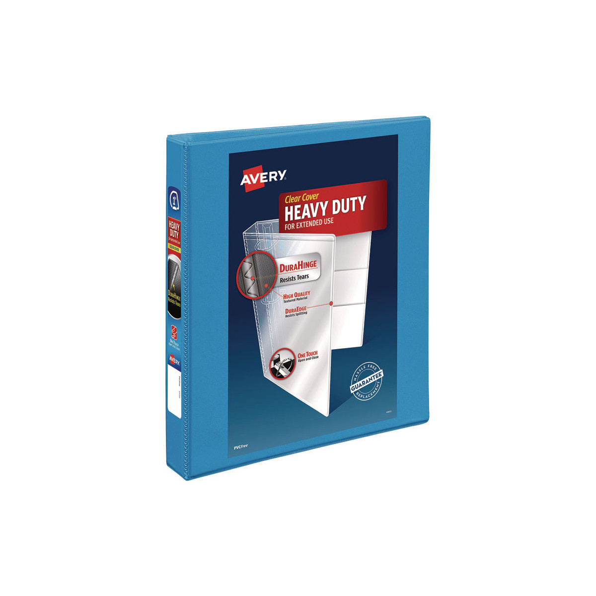 With this Heavy-Duty Nonstick View Binder you get one-touch operation and the durability required for everyday use. Nonstick material won't lift ink or toner off printed pages. Tear-resistant DuraHinge® design is stronger and lasts longer. DuraEdge® feature makes the sides and top more pliable, providing greater split resistance. Deeply textured film offers a smoother finish and features a linen pattern for a high-quality look and feel. Four clear, interior pockets provide extra storage space. Wider front and back panels fully cover standard dividers and sheet protectors. Slant rings have a higher page capacity when compared to the same size round rings. Pages lie flat with back-mounted rings (exposed rivets on back). Customize your title page using free templates and designs at Avery® Design & Print Online.
