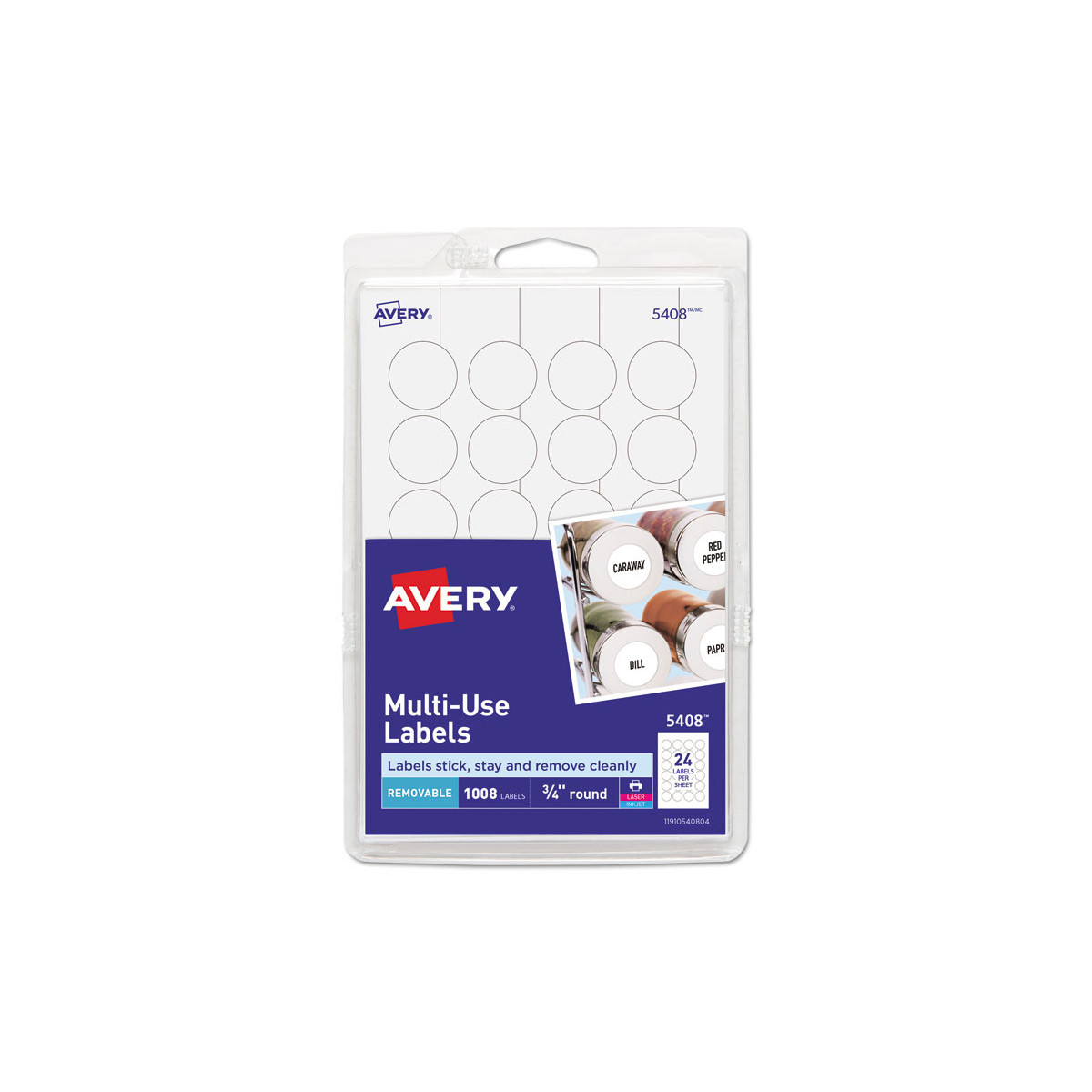 Removable Multi-Use Labels, Inkjet/Laser Printers, 0.75" dia, White, 24/Sheet, 42 Sheets/Pack, (5408)