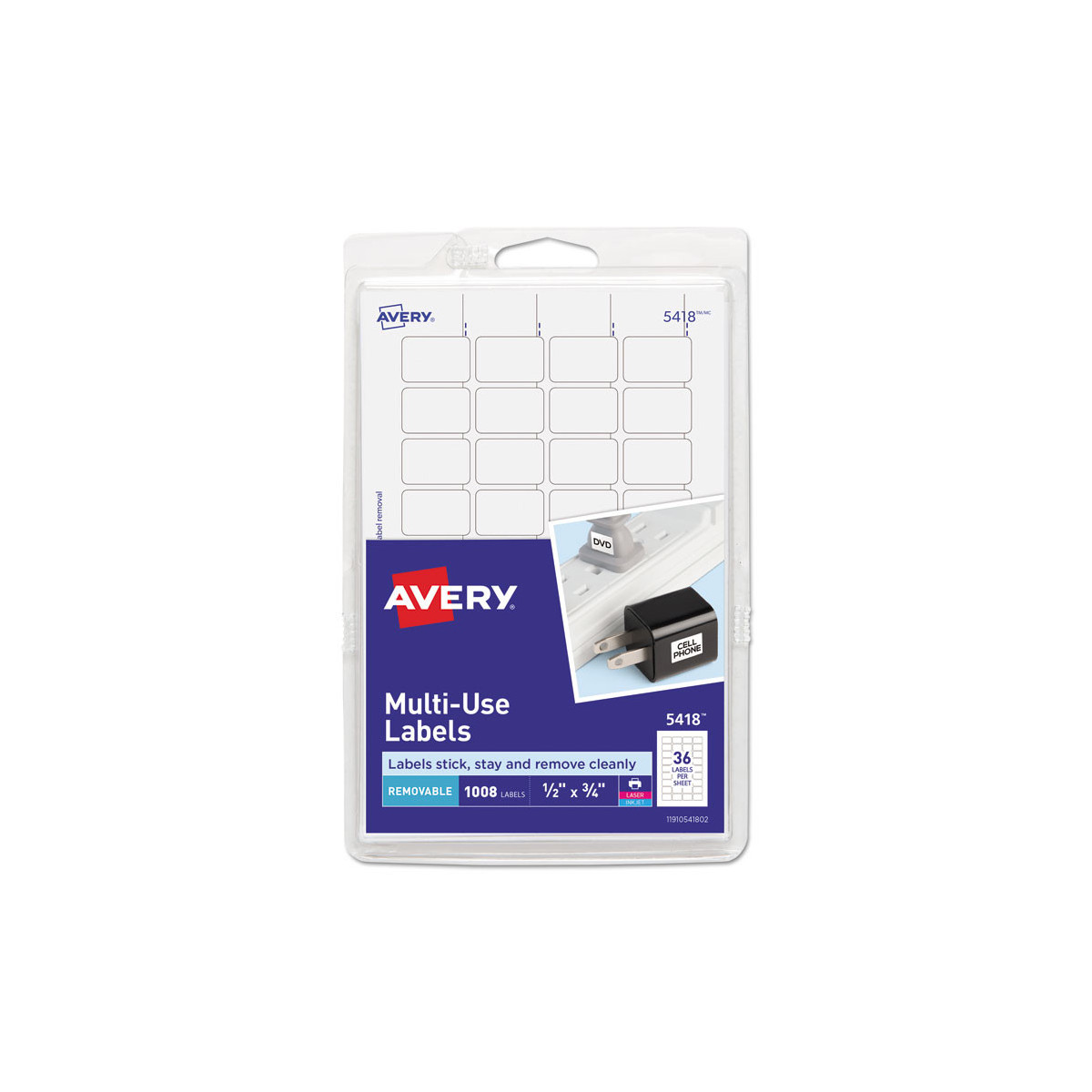 Removable Multi-Use Labels, Inkjet/Laser Printers, 0.5 x 0.75, White, 36/Sheet, 28 Sheets/Pack, (5418)