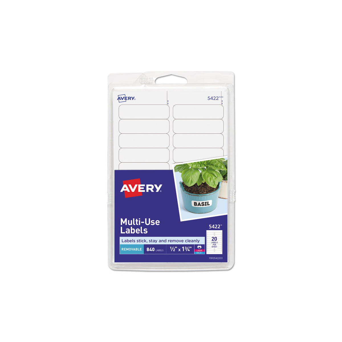 Removable Multi-Use Labels, Inkjet/Laser Printers, 0.5 x 1.75, White, 20/Sheet, 42 Sheets/Pack, (5422)