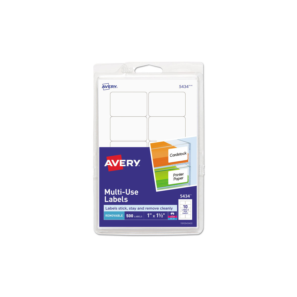 Removable Multi-Use Labels, Inkjet/Laser Printers, 1 x 1.5, White, 10/Sheet, 50 Sheets/Pack, (5434)