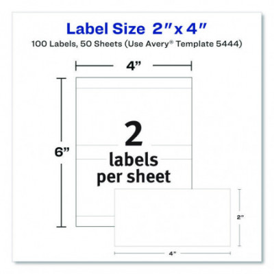 Removable Multi-Use Labels, Inkjet/Laser Printers, 2 x 4, White, 2/Sheet, 50 Sheets/Pack, (5444)