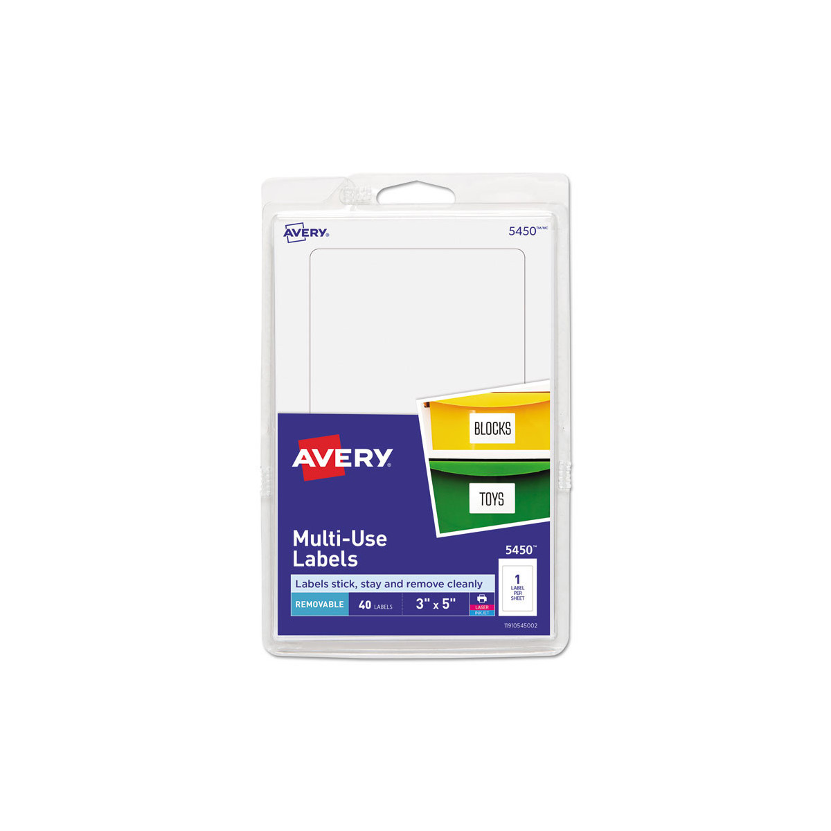 Removable Multi-Use Labels, Inkjet/Laser Printers, 3 x 5, White, 40/Pack, (5450)