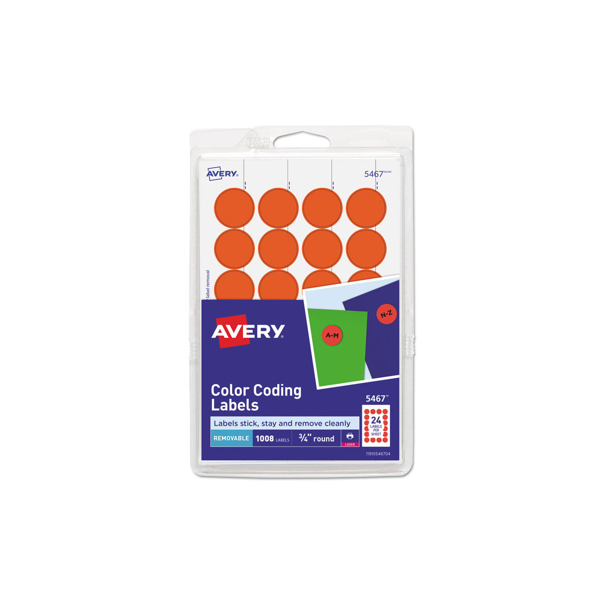 Printable Self-Adhesive Removable Color-Coding Labels, 0.75" dia, Neon Red, 24/Sheet, 42 Sheets/Pack, (5467)