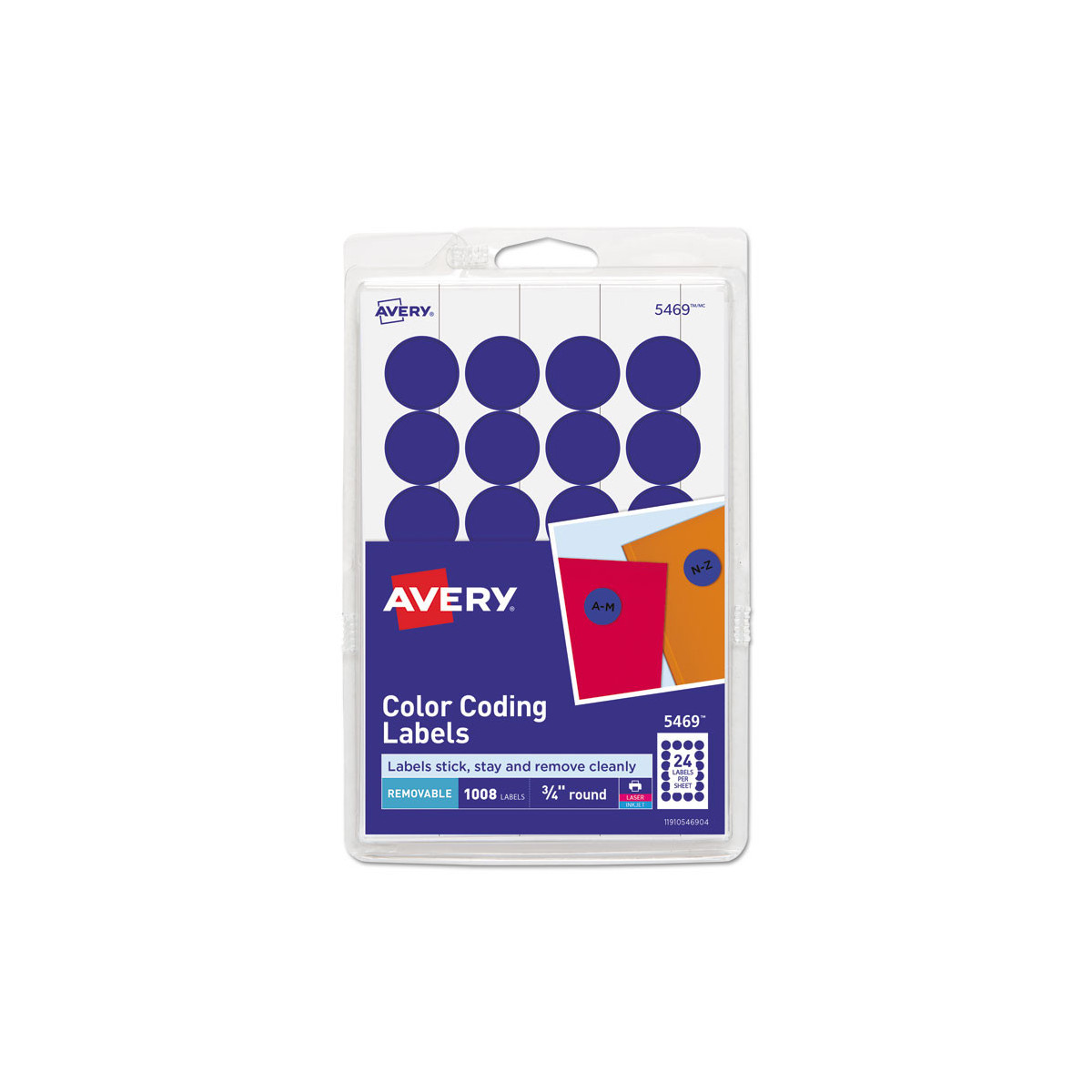 Printable Self-Adhesive Removable Color-Coding Labels, 0.75" dia, Dark Blue, 24/Sheet, 42 Sheets/Pack, (5469)