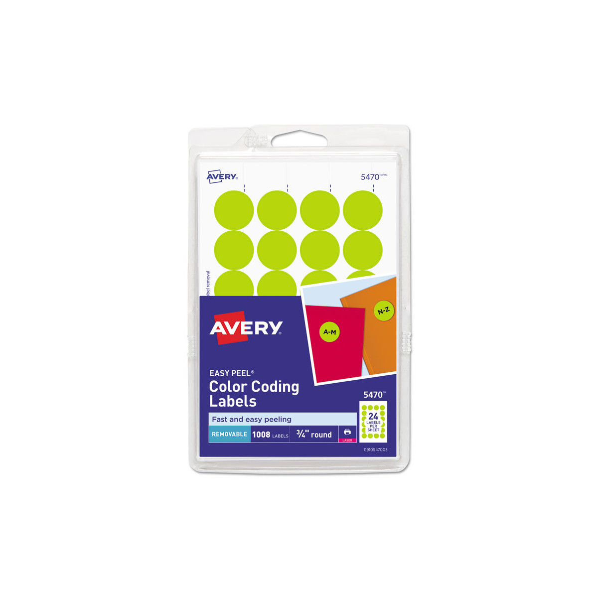 Printable Self-Adhesive Removable Color-Coding Labels, 0.75" dia, Neon Yellow, 24/Sheet, 42 Sheets/Pack, (5470)