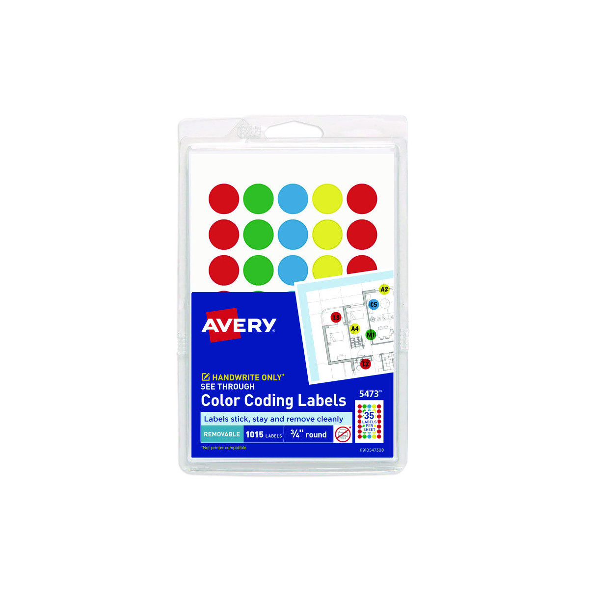Handwrite-Only Self-Adhesive "See Through" Removable Round Color Dots, 0.75" dia, Assorted, 35/Sheet, 29 Sheets/Pack, (5473)