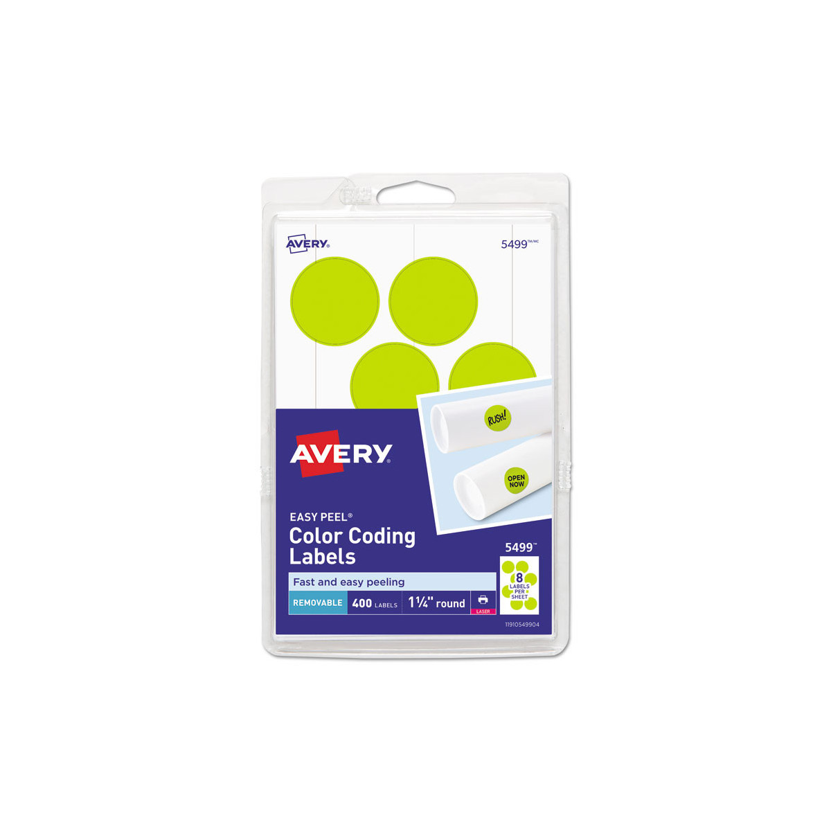 Printable Self-Adhesive Removable Color-Coding Labels, 1.25" dia, Neon Yellow, 8/Sheet, 50 Sheets/Pack, (5499)