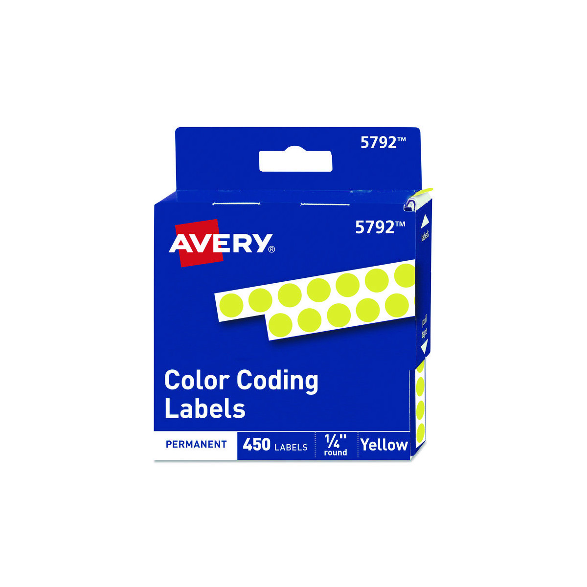 Handwrite-Only Permanent Self-Adhesive Round Color-Coding Labels in Dispensers, 0.25" dia, Yellow, 450/Roll, (5792)