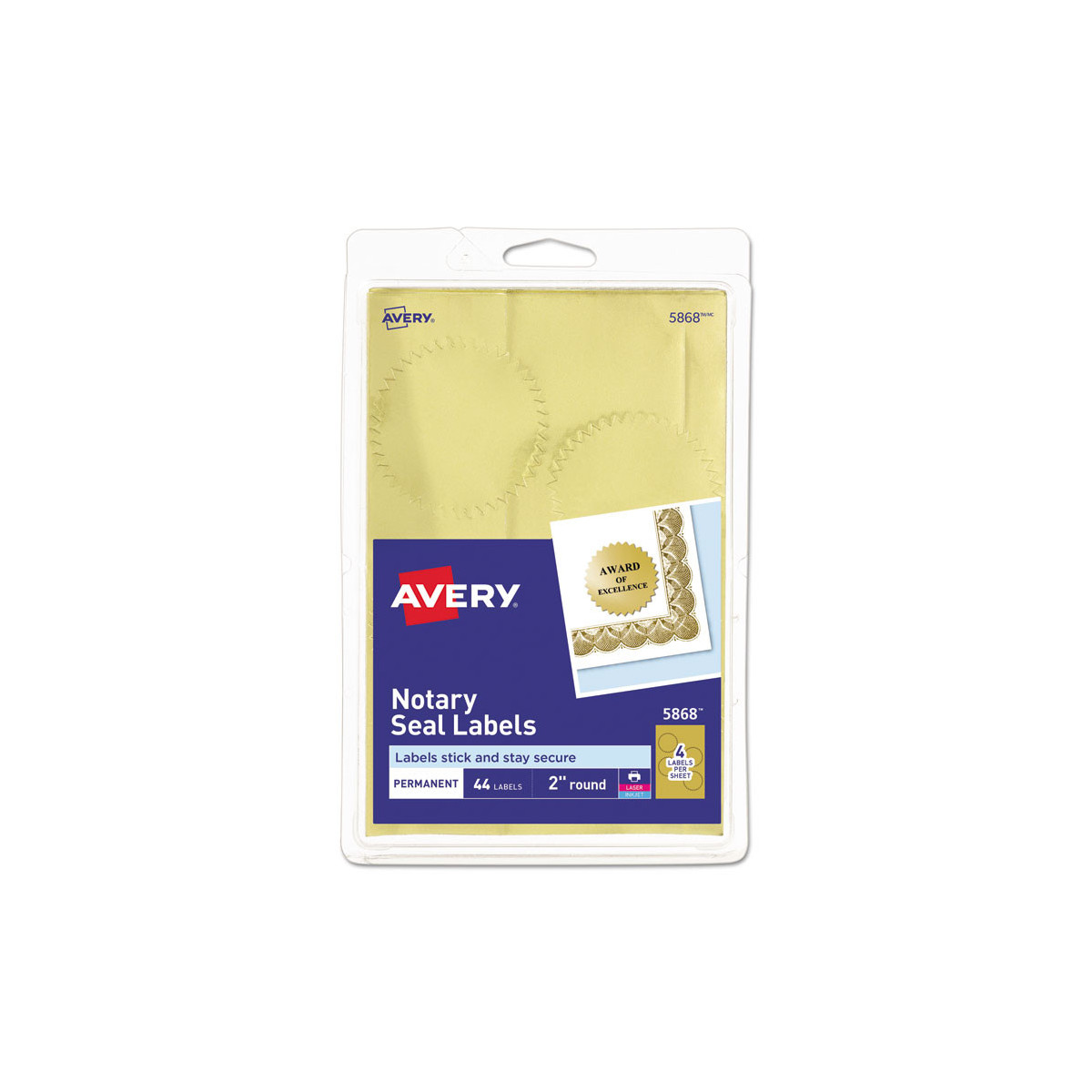 Shiny metallic gold seals are ideal for certificates, awards, sealing envelopes and more. Permanent adhesive keeps seals secure and flat. Perfect for embossing. Hand write or print 4 x 6 sheets on inkjet printers. Easy to customize using free Avery design tools and templates.