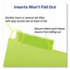 Provides 1.5 times more writing space than standard tabs. Special tab design secures inserts, making it easy to insert and remove tab titles. The plastic pocket holds up to 8.5" x 11" loose papers without folding or punching. Made of durable, tear-resistant plastic.