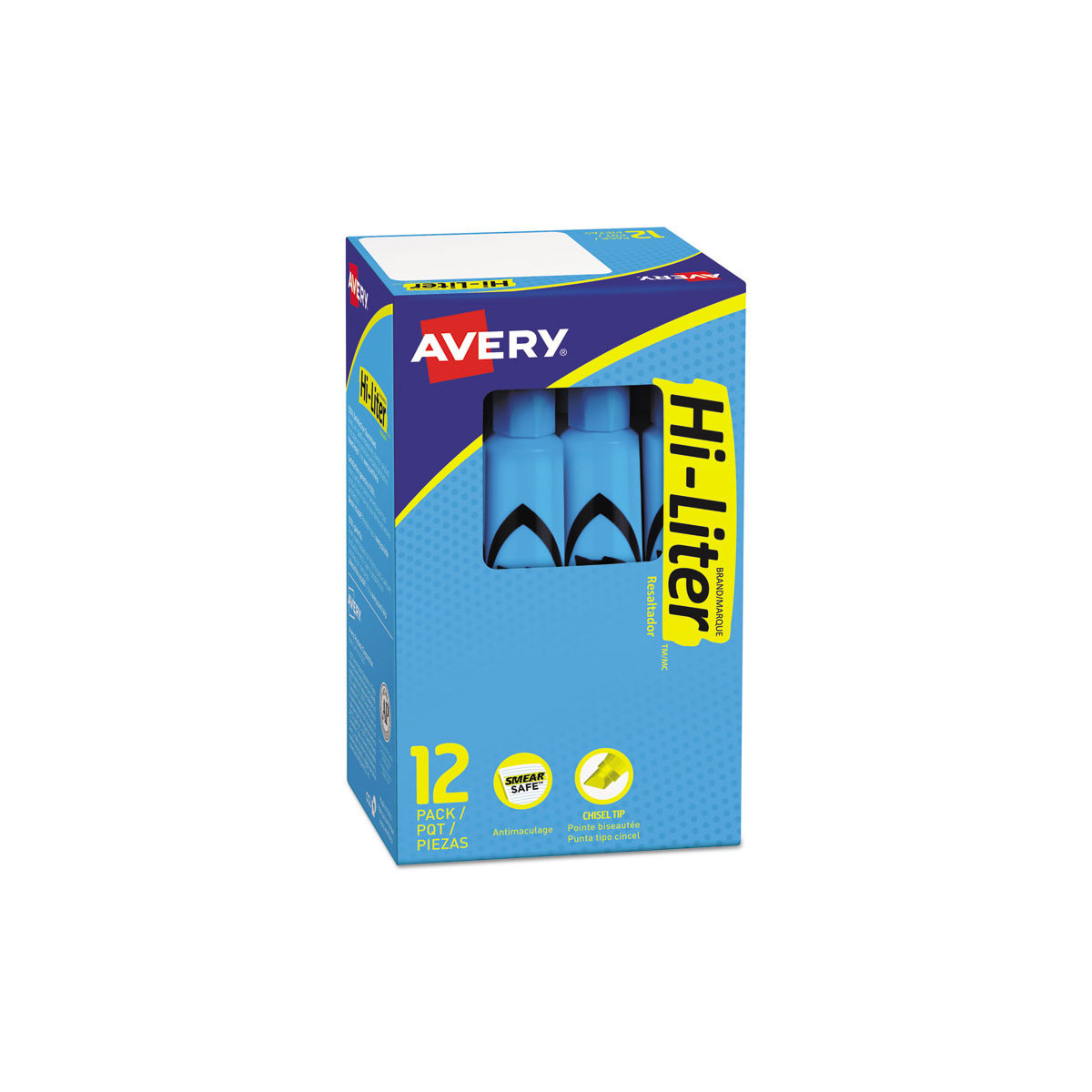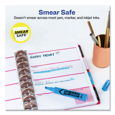 Study research materials, prepare documents or call attention to important information with Avery® HI-LITER Desk-Style Highlighters. Smear Safe, quick-drying ink provides reliable smear protection across most pen, marker and inkjet inks. Durable, fray-proof chisel tip accommodates both highlighting and underlining, while ensuring smooth performance. Nontoxic, low-odor ink is ideal for classrooms, offices and the home.