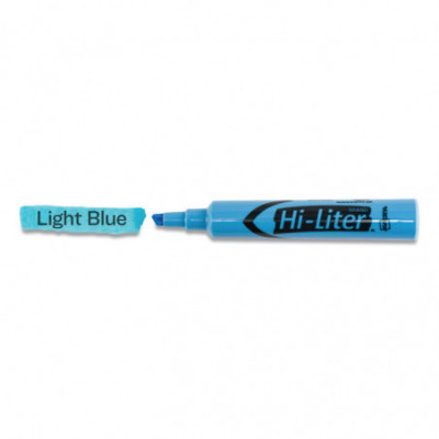 HI-LITER Desk-Style Highlighters, Light Blue Ink, Chisel Tip, Light Blue/Black Barrel, Dozen