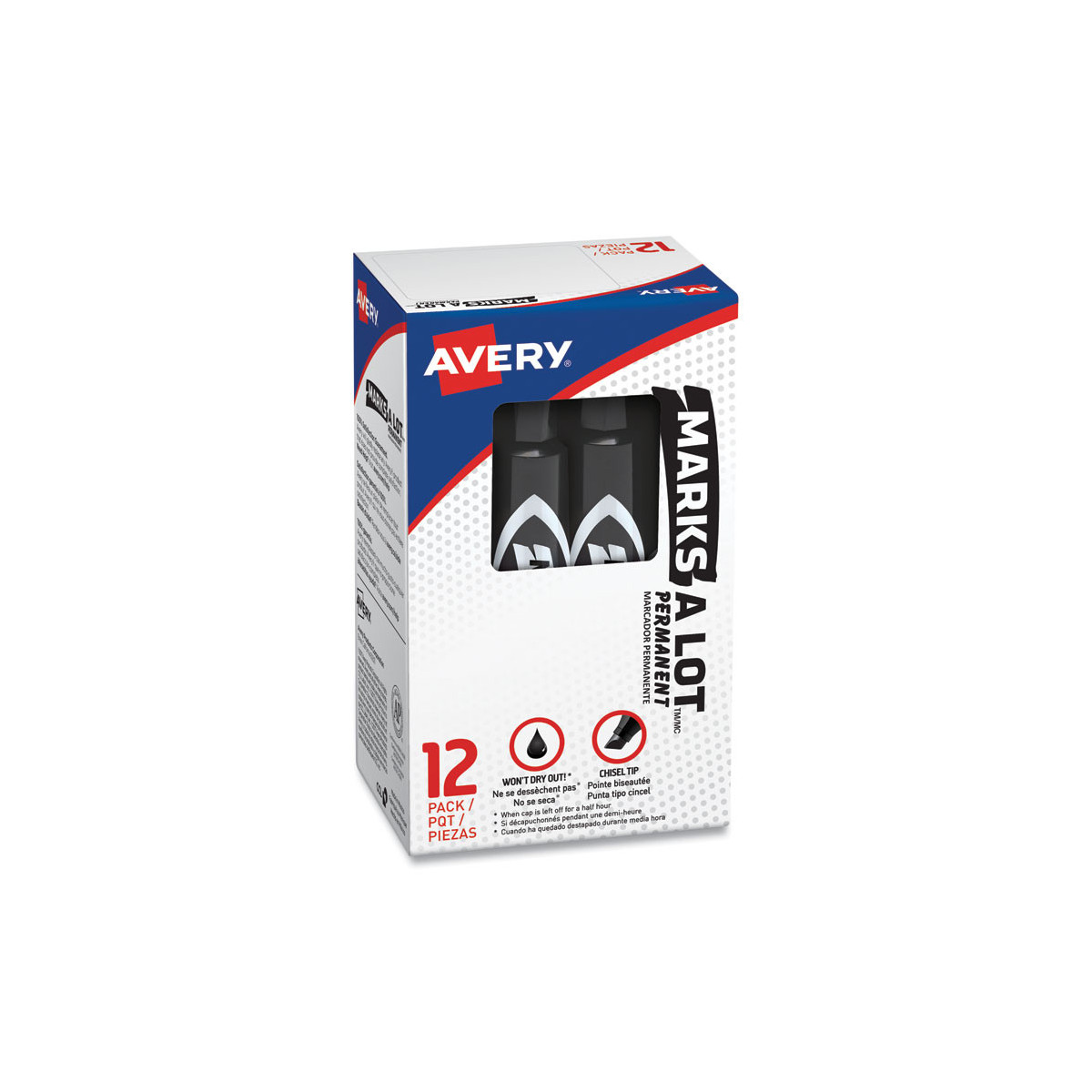 MARKS A LOT Regular Desk-Style Permanent Marker, Broad Chisel Tip, Black, Dozen (7888)