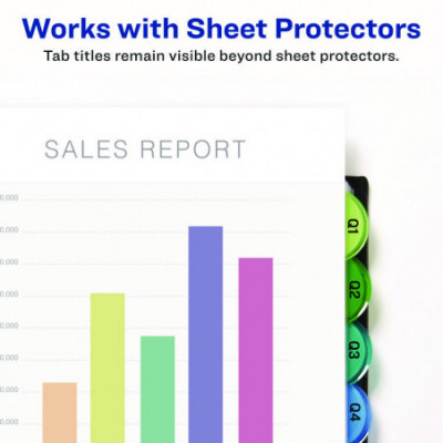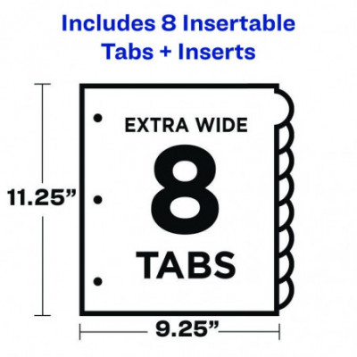Unique tab design will add color and style to your documents. Durable plastic allows for frequent reference. Large tabs provide a large print area and insert from the side for a secure fit. Easy to customize with free templates from Avery Design & Print. For laser and inkjet printers.