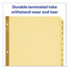 Organize with preprinted laminated tabs featuring bold black printing on front and back for maximum readability. Rip-Proof™ reinforced tabs will not bend even under heavy usage. Gold reinforced binding edge provides extra tear resistance. Quality buff paper is three-hole punched.