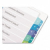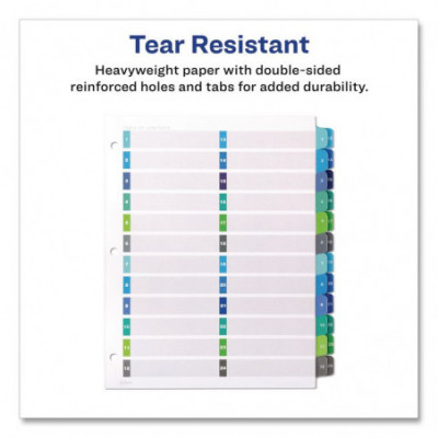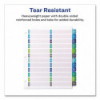 Table of Contents has two columns, providing more printing space to better identify each tab section. Double layer multicolor tabs have less overlap and are easier to grab and turn. Bottom set of tabs extend further out than top set to allow you to see all tabs at once. The coordinated system of a reinforced Table of Contents page and matching preprinted tab dividers makes referencing easy while delivering a professional look. Customize the Table of Contents page by adding section titles, as well as graphics or a company logo. Extended tab reinforcement and double-sided hole reinforcement on heavier weight paper prevents tearing, even with frequent use. Use in portrait or landscape formats. Easy to customize with free templates from Avery Design & Print. For laser and inkjet printers.