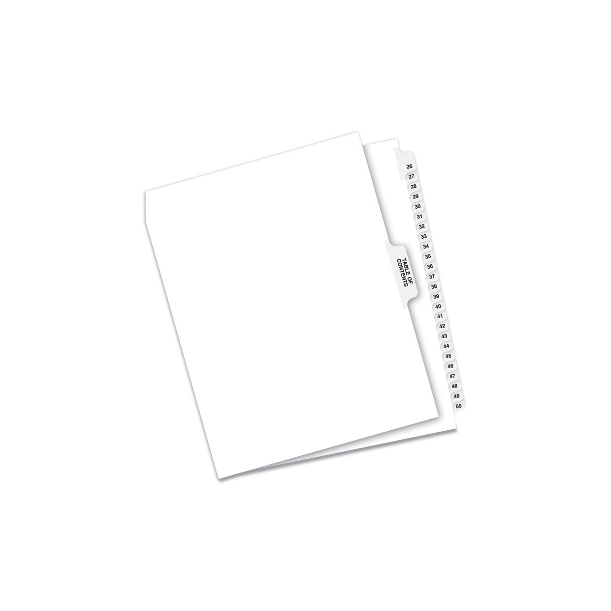 Preprinted Legal Exhibit Side Tab Index Dividers, Avery Style, 26-Tab, 26 to 50, 11 x 8.5, White, 1 Set