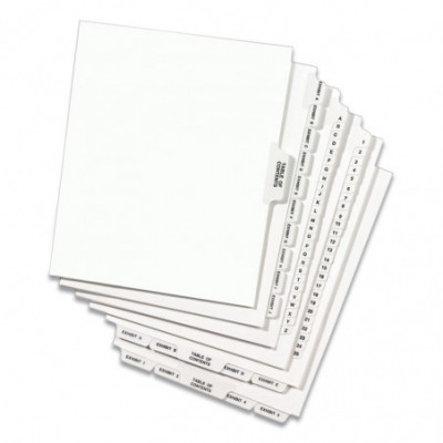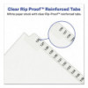 Use these dividers to organize index briefs, legal exhibits, mortgage documentation files and more. The crisp and clean white paper stock dividers give files a professional appearance. The durable Rip Proof™ reinforced tabs are preprinted on both sides so information can be located easily. The unpunched binding edges mean these indexes can fit practically any binding system.