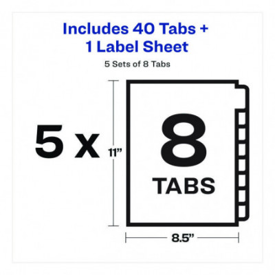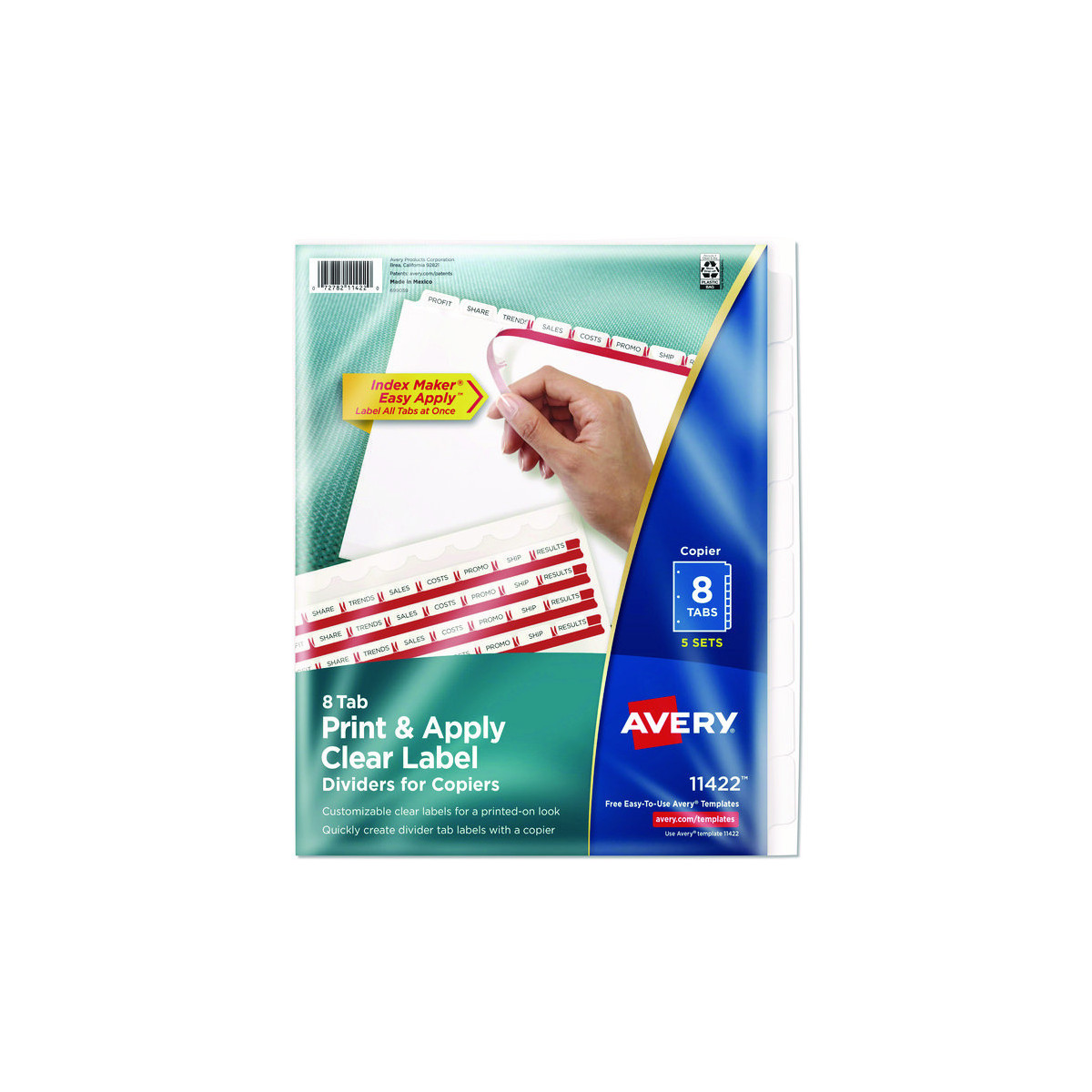 Print and Apply Index Maker Clear Label Dividers, Copiers, 8-Tab, 11 x 8.5, White, 5 Sets