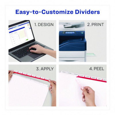 Index Maker® Dividers make coordinating projects easier. Whether you're organizing a single project or multiple binder sets, these dividers let you to get it done quickly and easily, with professional results, using your copier. The clear labels virtually disappear on the tabs, giving your dividers a clean, printed-on look. Save time with the Easy Apply™ strip that lets you label all the tabs at once, making it simple to create custom dividers. Just use the free templates from Avery Design & Print and you can personalize your Easy Apply™ tab labels in minutes. The dividers are the perfect tool for all your organization needs. For copiers.