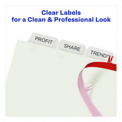 Quickly create professional-looking dividers with your copier. Clear labels virtually disappear when applied to tabs, giving a printed-on look. Use the Easy Apply™ strip to label all the tabs at once. Easy to customize tab labels with free templates and designs using Avery Design & Print. For copiers.