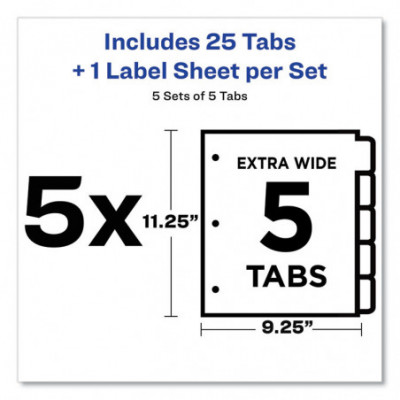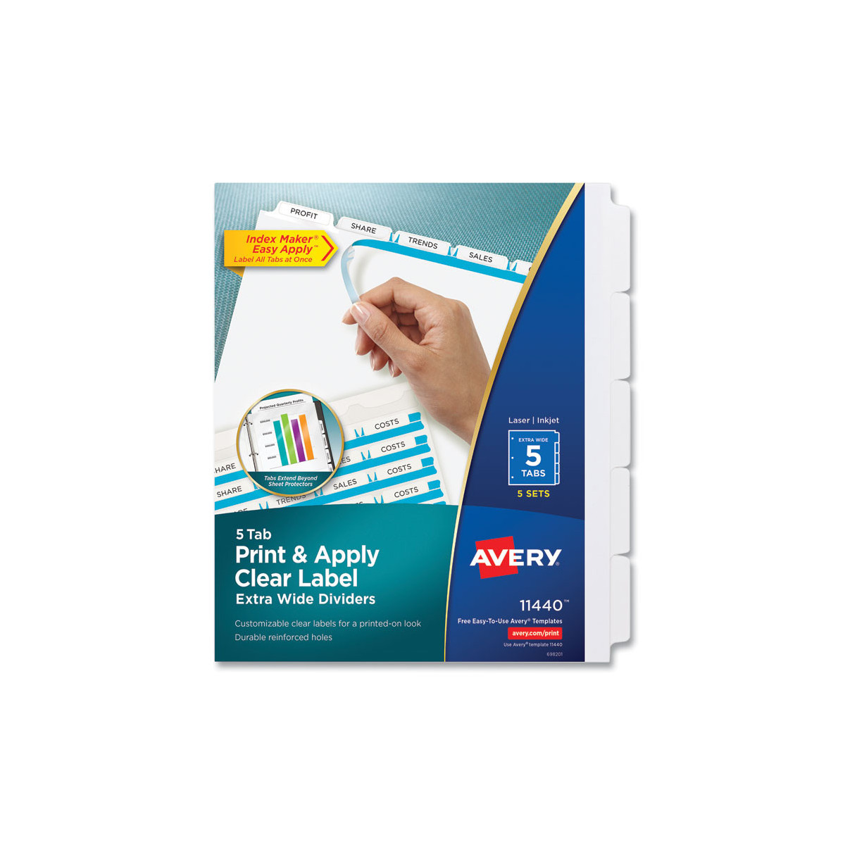 Print and Apply Index Maker Clear Label Dividers, Extra Wide Tab, 5-Tab, White Tabs, 11.25 x 9.25, White, 5 Sets