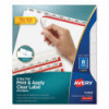 Clear labels virtually disappear on divider tabs giving a printed-on look. Label all tabs at once using the Easy Apply label strip. Great for organizing single projects or creating multiple sets. Easy to customize with free templates from Avery Design & Print. For laser and inkjet printers.
