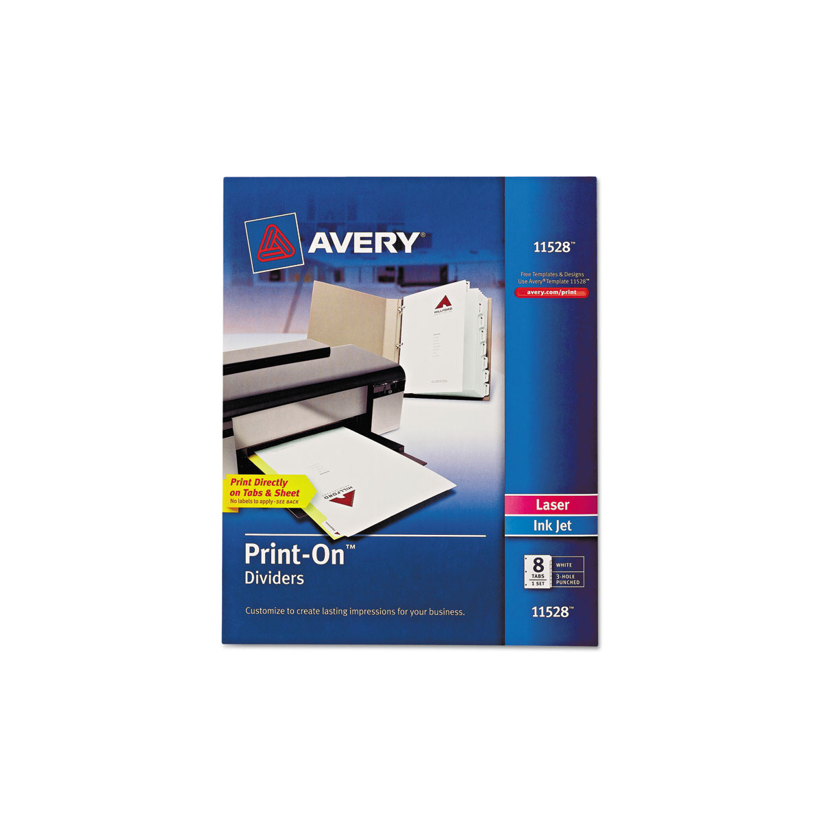 Print professional-looking dividers for presentations from your computer. Print logo, text and graphics directly on tabs and divider sheet. Print in either landscape or portrait format. Easy to customize with free templates from Avery® Design & Print. For laser, color laser and inkjet printers.