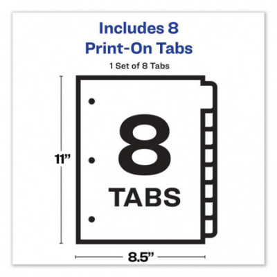 Customizable Print-On Dividers, 3-Hole Punched, 8-Tab, 11 x 8.5, White, 1 Set