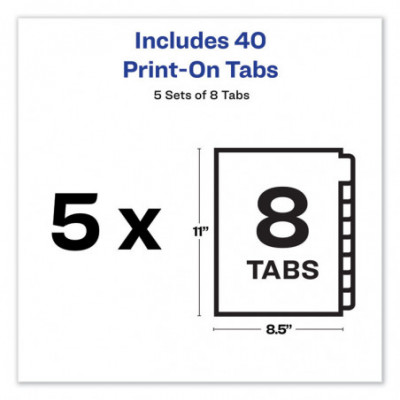 Customizable Print-On Dividers, Unpunched, 8-Tab, 11 x 8.5, White, 5 Sets