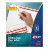Clear labels virtually disappear on divider tabs giving a printed-on look. Label all tabs at once using the Easy Apply label strip. Great for organizing single projects or creating multiple sets. Easy to customize with free templates from Avery Design & Print. For laser and inkjet printers.