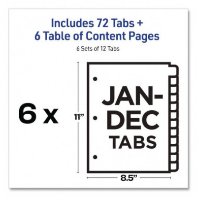 Customizable Table of Contents Ready Index Multicolor Dividers, 12-Tab, Jan. to Dec., 11 x 8.5, White, 6 Sets