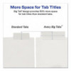 Tabs provide 50% more writing space than standard tabs. Tab design allows easy insertion and removal, but keeps insert securely in place. Made of durable translucent plastic. Easily customize with free templates from Avery Design & Print. Handwrite or print inserts on laser and inkjet printers.