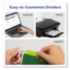 Tabs provide 50% more writing space than standard tabs. Tab design allows easy insertion and removal, but keeps insert securely in place. Made of durable translucent plastic. Easily customize with free templates from Avery Design & Print. Handwrite or print inserts on laser and inkjet printers.