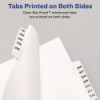 Use these dividers to organize index briefs, legal exhibits, mortgage documentation files and more. The crisp and clean white paper stock dividers give files a professional appearance. The durable Rip Proof™ reinforced tabs are preprinted on both sides so information can be located easily. The unpunched binding edges mean these indexes can fit practically any binding system.