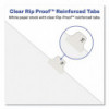 Rip Proof™ reinforced tabs printed on both sides with exhibit letter. Easy-to-read Helvetica bold type stands out. Unpunched for flexibility in binding.