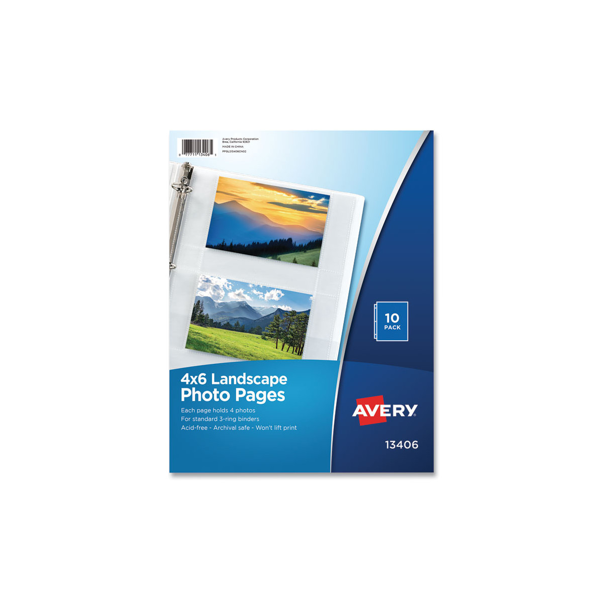Display your photos with variety suitable to your diverse subject matter. Avery® Photo Pages are perfect for your photos. Three protective photo pockets offer the option of portrait and landscape orientation on the same page so you can properly appreciate your photos of both soaring skyscrapers and sunsets that stretch the length of the horizon. Prepunched holes let you fit the pages conveniently in standard three-ring binders. The pages are acid-free and archival-safe to ensure your many photos stay in top condition to show off again and again.