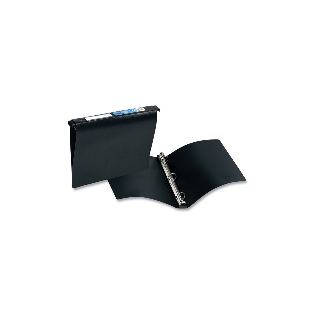 Get the hang of improved organization in no time flat. Built-in hangers make this hanging storage binder ideal for use with your standard hanging file system. The non-stick poly cover is sturdy enough to give your papers the protection they need, yet flexible enough to make storage a snap. The handy spine ID helps you find the right binder with a glance, and the rings lock to ensure that your papers stay in place. Hang strong!
