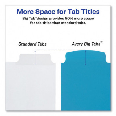 Write, erase and reuse for easy changes at any time. Simply write directly on the tabs with a ballpoint pen or pencil, and erase as needed. You can also take quick notes on the divider body and easily erase later. Made from ultra-durable, tear-resistant plastic, these dividers are ideal for frequent use in any three-ring binder. The Big Tab™ design offers 1.5 times more writing space than standard divider tabs, and the multiple colors allow for quick referencing. Ideal for your personal organization at home, work and school.