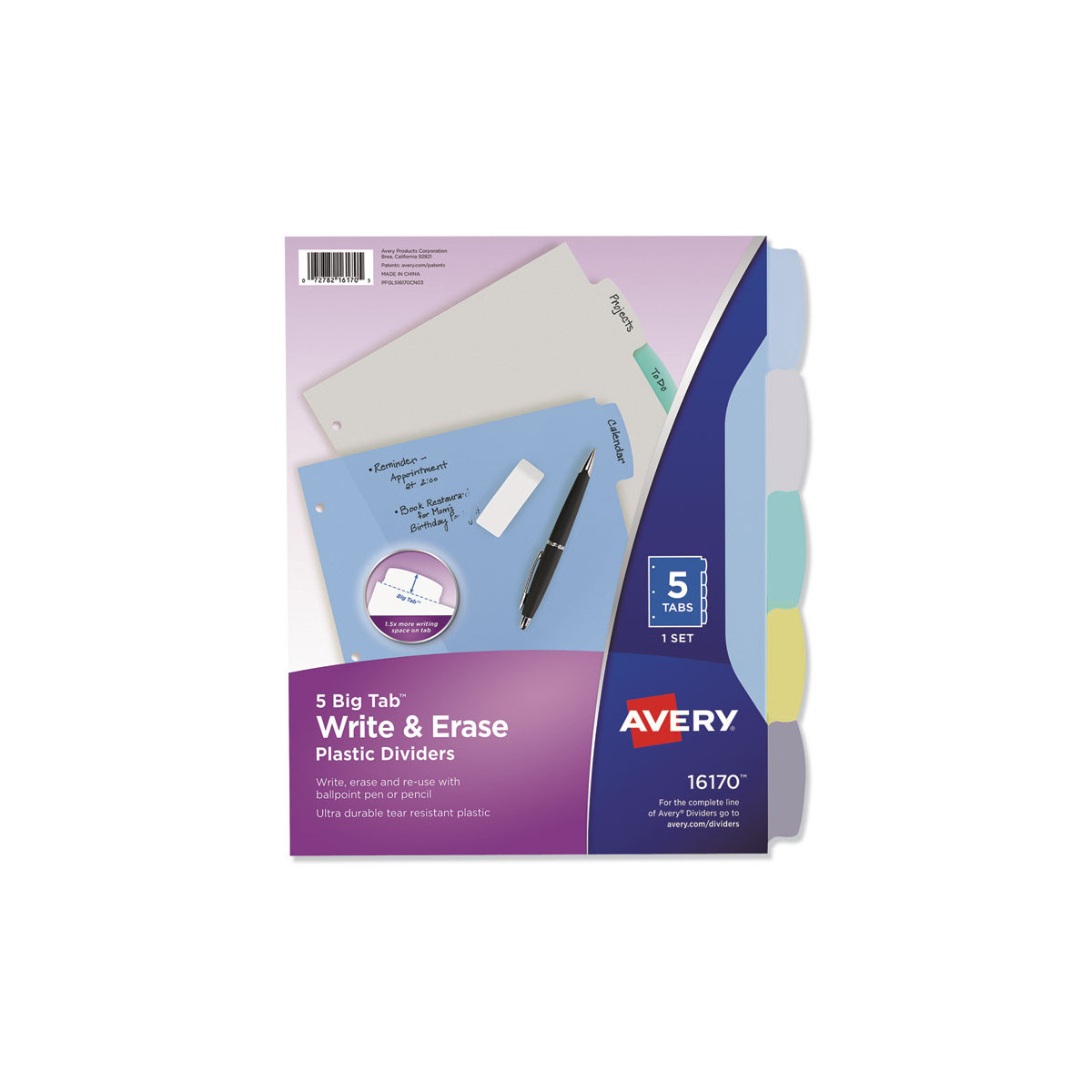 Durable plastic allows for frequent reference. Stylishly shaped Big Tab™ Dividers are larger, providing 50% more writing space than standard tabs. Customize tabs using a ballpoint pen or pencil. To reuse, just erase and write again.
