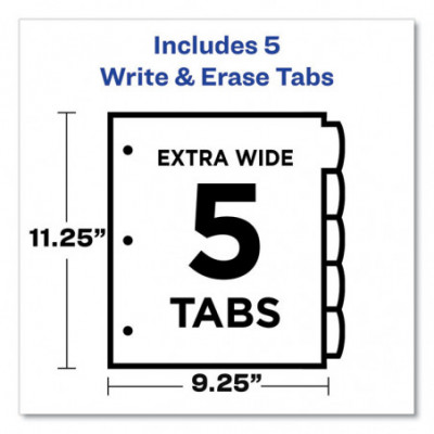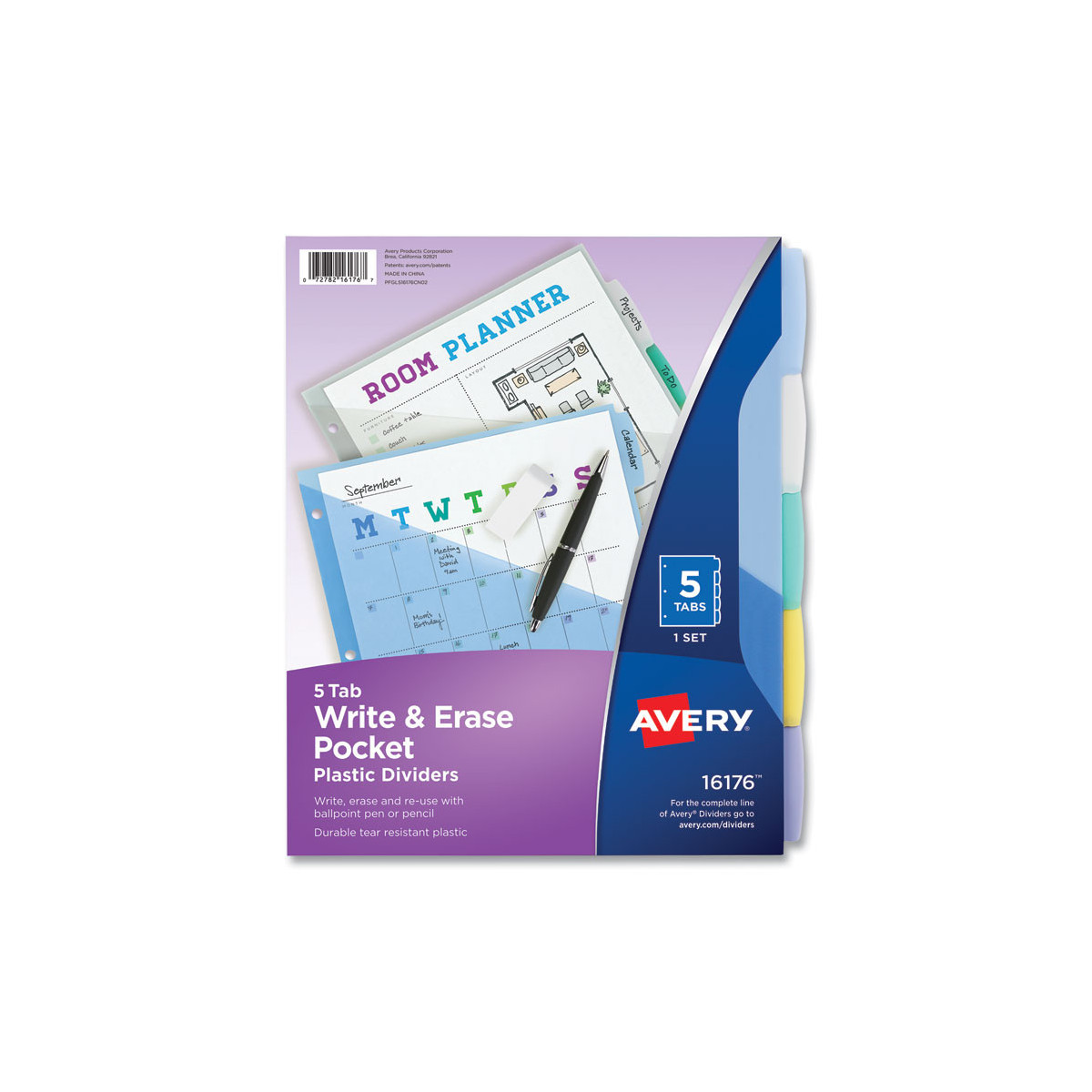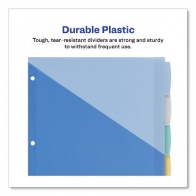 Write and Erase Durable Plastic Dividers with Slash Pocket, 3-Hold Punched, 5-Tab, 11.13 x 9.25, Assorted, 1 Set