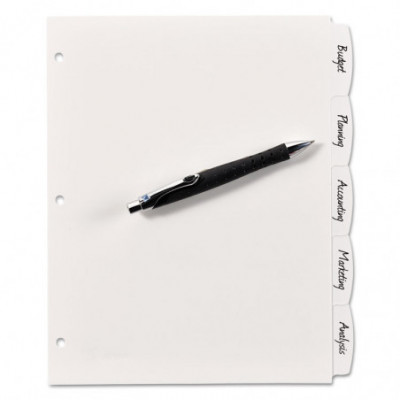Durable plastic allows for frequent reference. Stylishly shaped Big Tab™ Dividers are larger, providing 50% more writing space than standard tabs. Customize tabs using a ballpoint pen or pencil. To reuse, just erase and write again.