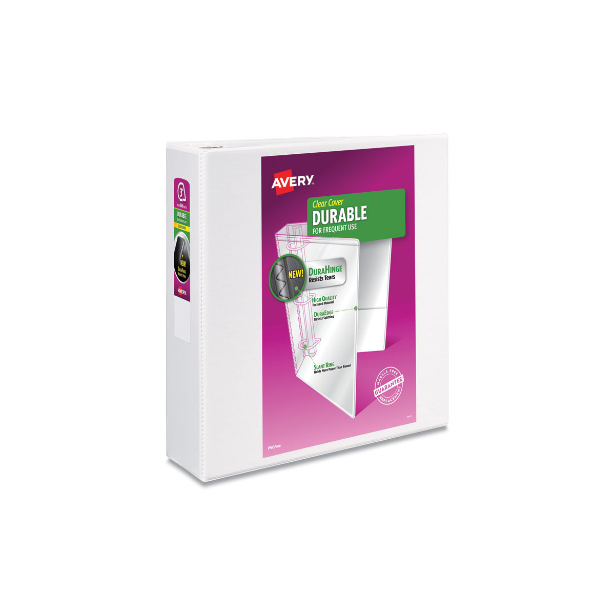Keep lecture notes, procedures and homework assignments organized with an Avery® Durable View Binder. The durable construction is ideal for frequent referencing. The DuraHinge® design is stronger, lasts longer and resists tearing, and the DuraEdge® feature makes the sides and top more pliable, providing greater split resistance. Deeply textured film offers a smoother finish and features a linen pattern for a high-quality look and feel. Two interior pockets help you organize and secure loose papers, and the slant rings hold a higher page capacity compared to same size round rings. Use the clear overlays to label and/or decorate the covers and spine. Customize your binder more easily and more creatively with free templates and designs at Avery® Design & Print Online.