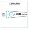TouchGuard™ binders are treated with an antimicrobial agent to protect the binder from the growth of mold, mildew and bacterial odors. Easily customize the clear cover and spine using free templates and designs from Avery® Design & Print. Slant rings have a higher page capacity compared to same size round rings. Non-stick polypropylene material prevents toner transfer. Four clear interior pockets for increased storage. Made with 100% recycled chipboard. Holds 8.5" x 11" documents.