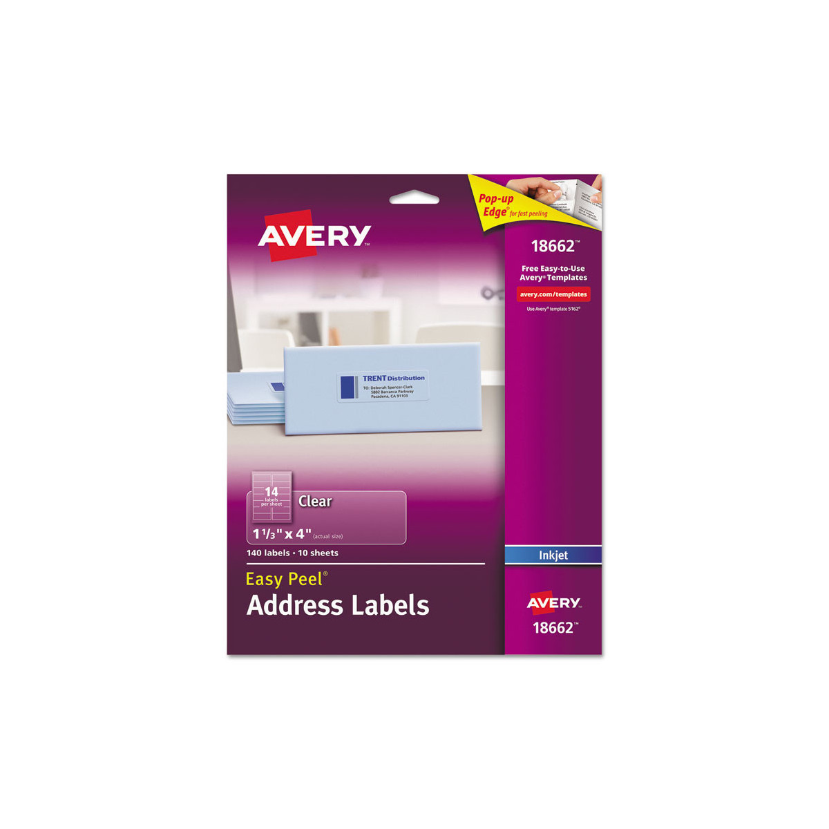 Matte Clear Easy Peel Mailing Labels w/ Sure Feed Technology, Inkjet Printers, 1.33 x 4, Clear, 14/Sheet, 10 Sheets/Pack