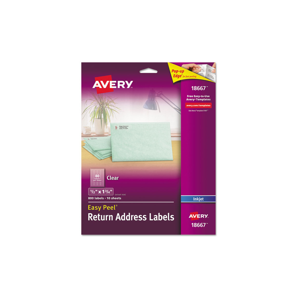Matte Clear Easy Peel Mailing Labels w/ Sure Feed Technology, Inkjet Printers, 0.5 x 1.75, Clear, 80/Sheet, 10 Sheets/Pack